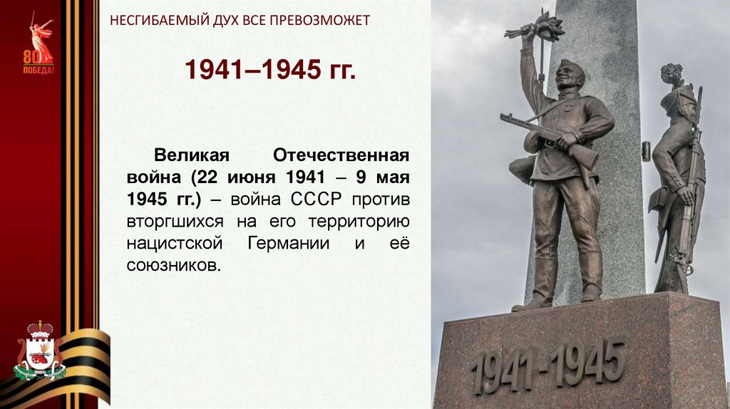 НЕСГИБАЕМЫЙ ДУХ ВСЕ ПРЕВОЗМОЖЕТ1941–1945 гг.