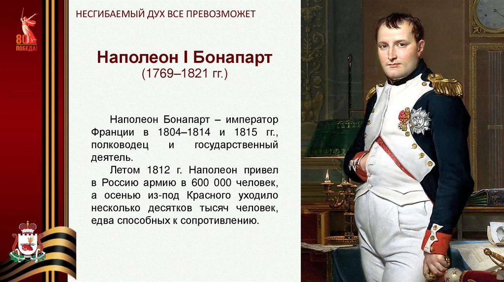 НЕСГИБАЕМЫЙ ДУХ ВСЕ ПРЕВОЗМОЖЕТНаполеон I Бонапарт