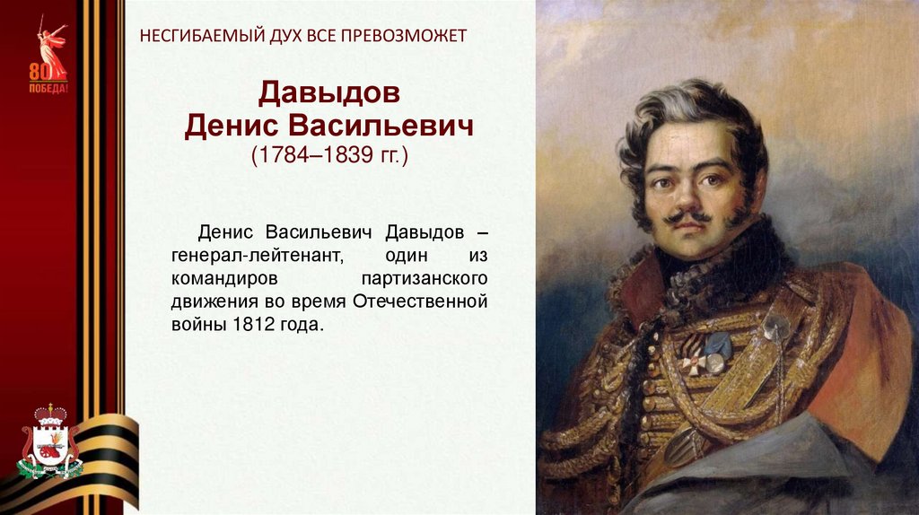 НЕСГИБАЕМЫЙ ДУХ ВСЕ ПРЕВОЗМОЖЕТ9. Давыдов Денис Васильевич (1784–1839 гг.)
