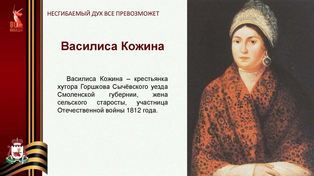 НЕСГИБАЕМЫЙ ДУХ ВСЕ ПРЕВОЗМОЖЕТВасилиса Кожина
