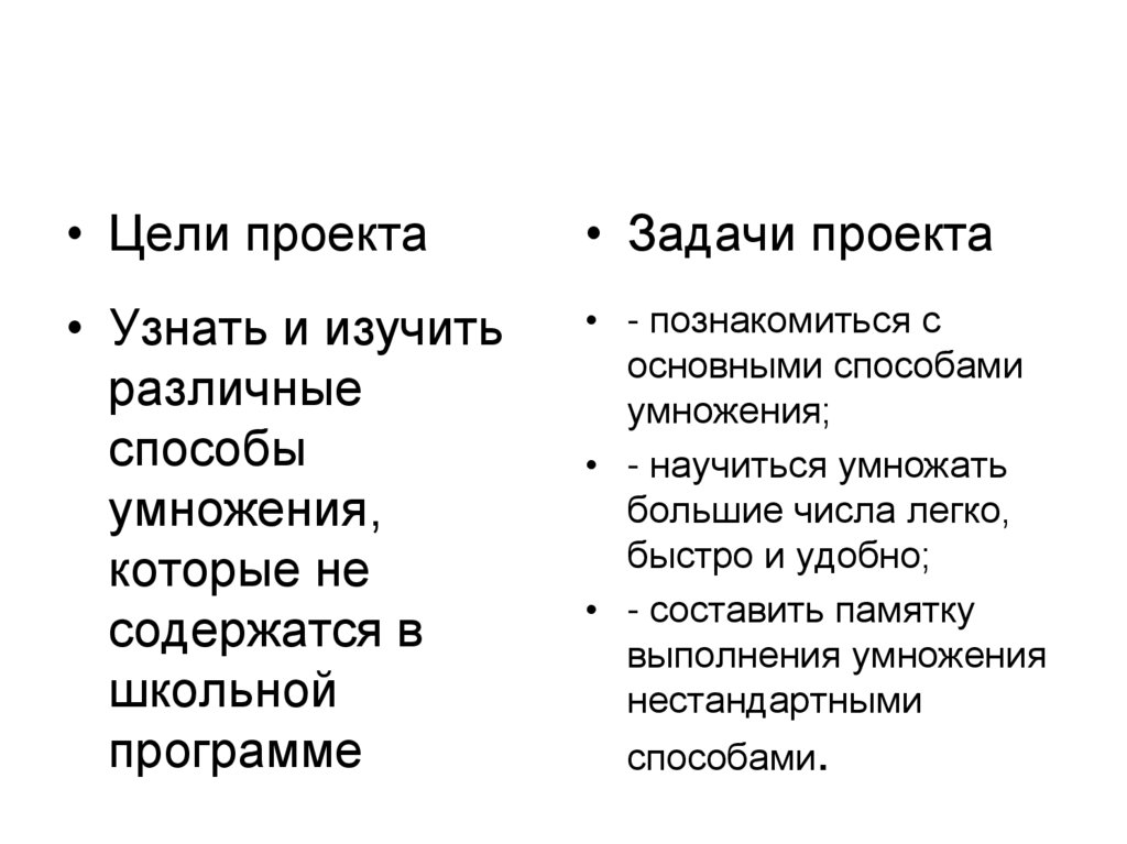 • Цели проекта• Задачи проекта