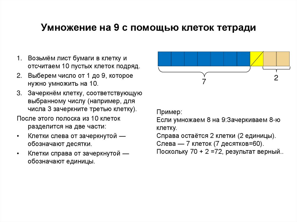3. Умножение на 9 с помощью клеток тетради