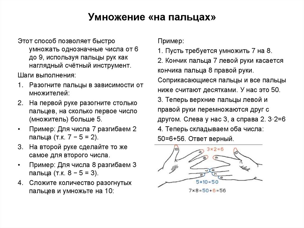 Этот способ позволяет быстроумножать однозначные числа от 6