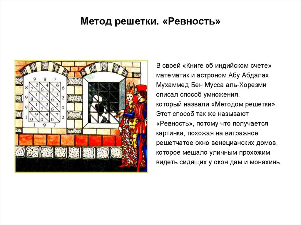 Метод решетки. «Ревность»В своей «Книге об индийском счете»