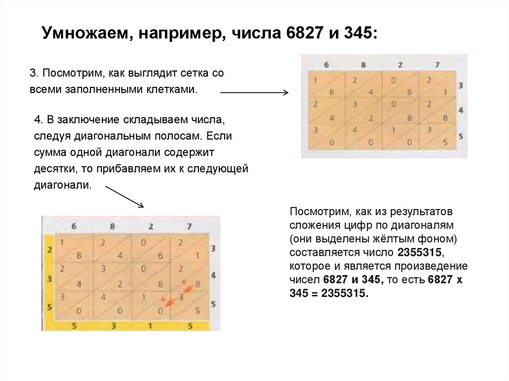 5. Умножение графическим методом (линейным, китайским)