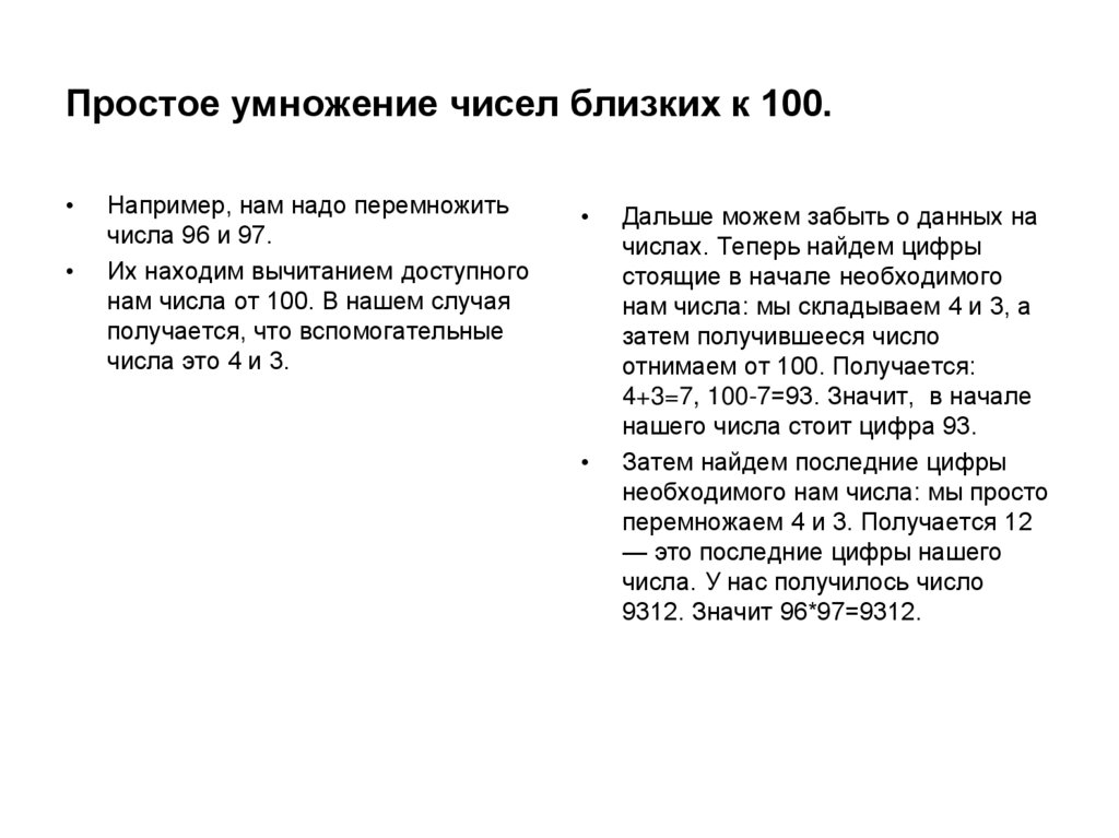 10. Простое умножение чисел близких к 100.