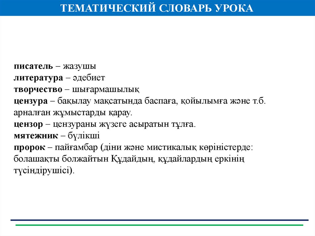 ТЕМАТИЧЕСКИЙ СЛОВАРЬ УРОКАписатель – жазушы