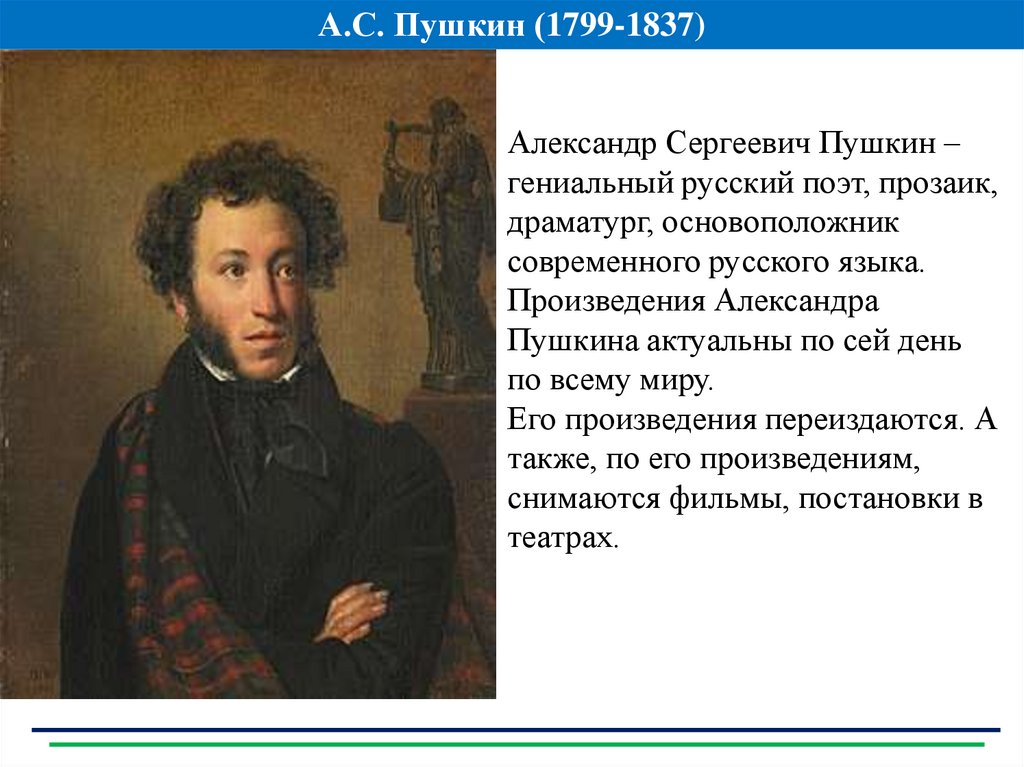А.С. Пушкин (1799-1837)Александр Сергеевич Пушкин –