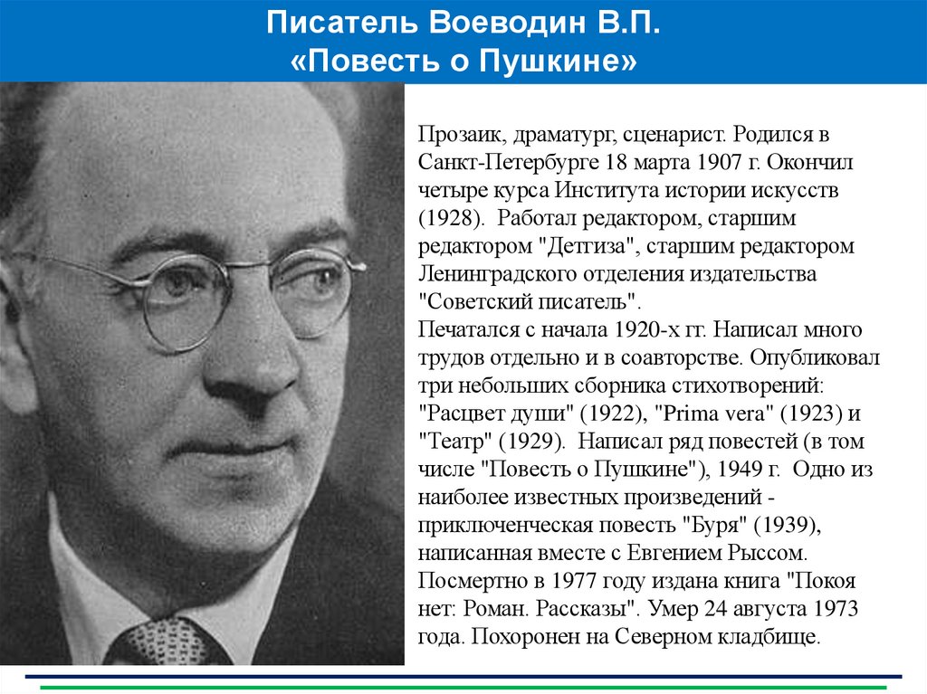 Писатель Воеводин В.П.«Повесть о Пушкине»