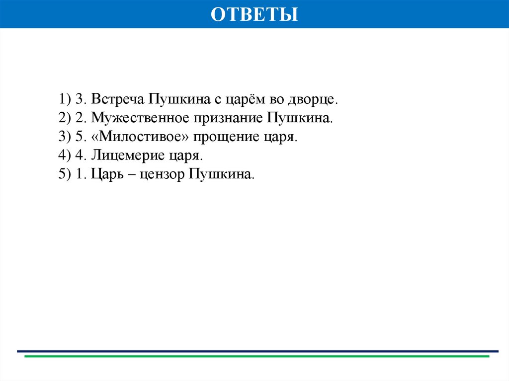 ОТВЕТЫ1) 3. Встреча Пушкина с царём во дворце.