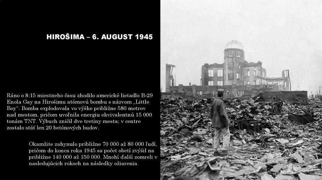 HIROŠIMA – 6. AUGUST 1945Ráno o 8:15 miestneho času zhodilo americké lietadlo B-29