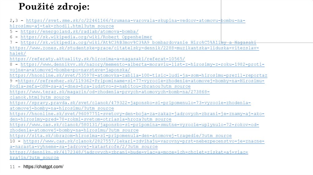 9 -https://refresher.sk/119362-Pripominame-si-77-vyrocie-zhodenie-atomovej-bomby-na-HirosimuPodla-sefa-OSN-sa-aj-dnes-hra-ludstvo-s-nabitou-zbranou?utm_source