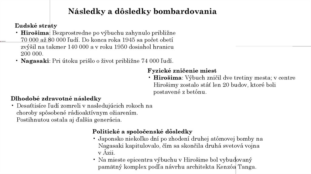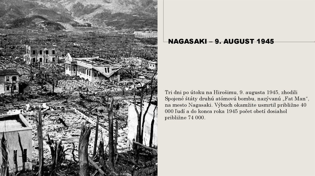 • Nagasaki: Pri útoku prišlo o život približne 74 000 ľudí.