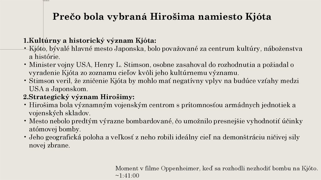Prečo bola vybraná Hirošima namiesto Kjóta1.Kultúrny a historický význam Kjóta: