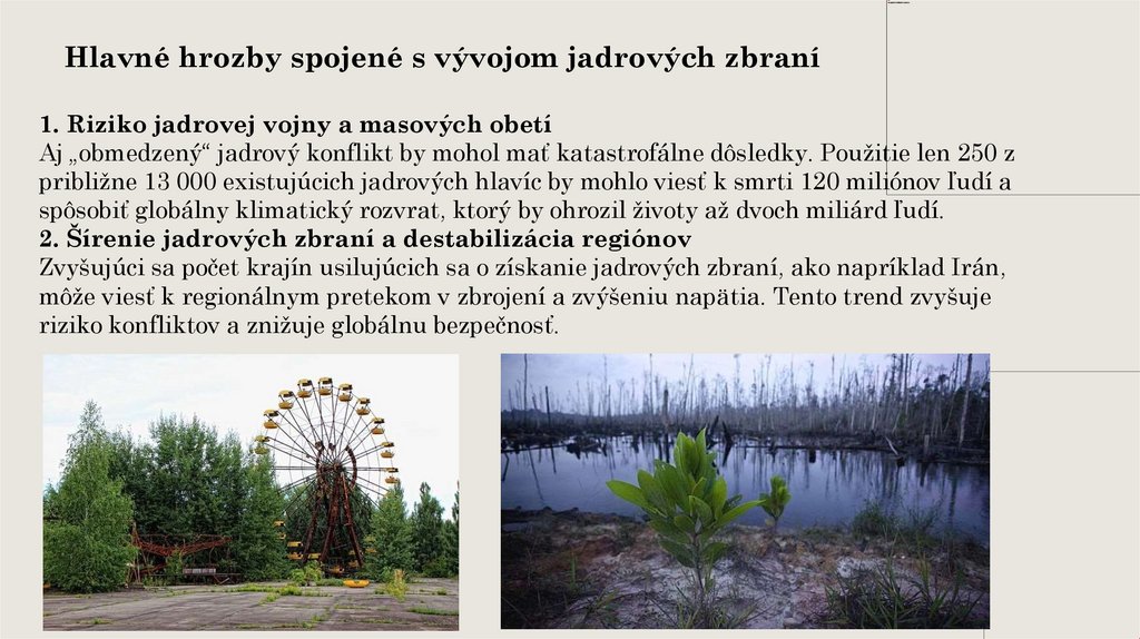 Hlavné hrozby spojené s vývojom jadrových zbraní1. Riziko jadrovej vojny a masových obetí