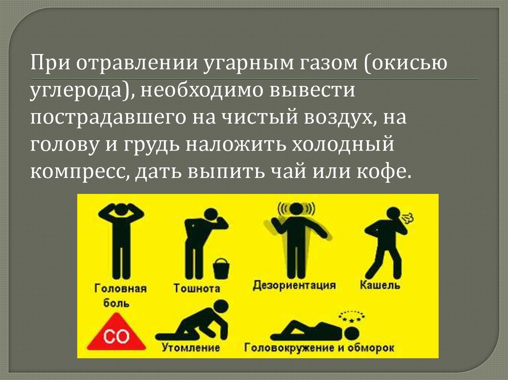 При отравлении угарным газом (окисьюуглерода), необходимо вывести