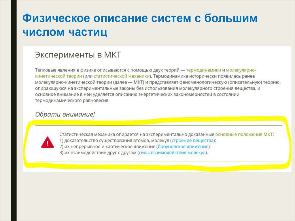 Физическое описание систем с большимчислом частиц