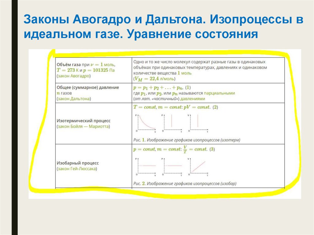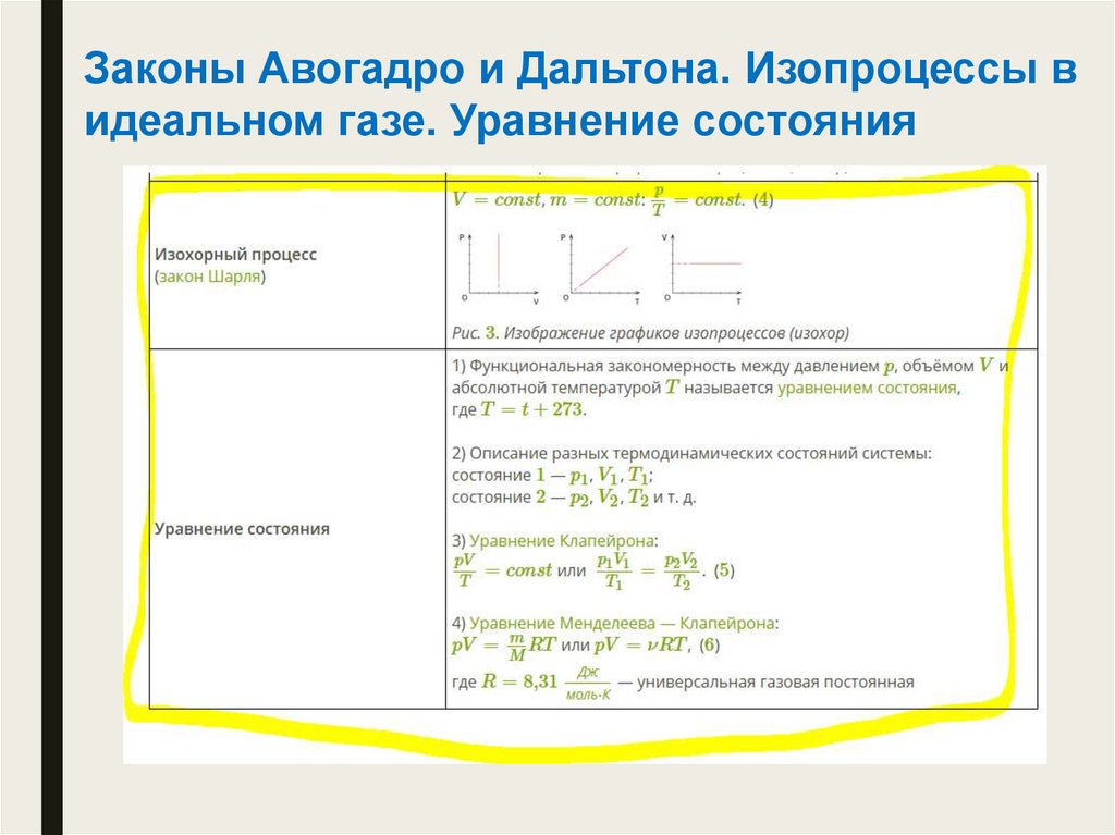 Законы Авогадро и Дальтона. Изопроцессы видеальном газе. Уравнение состояния