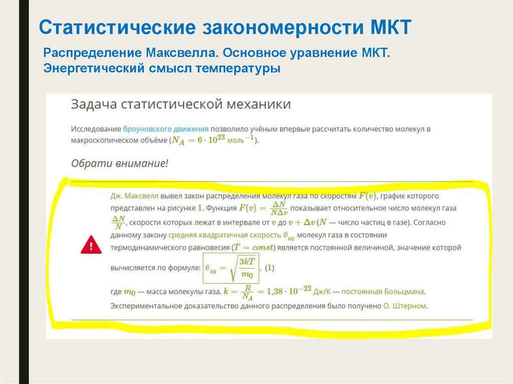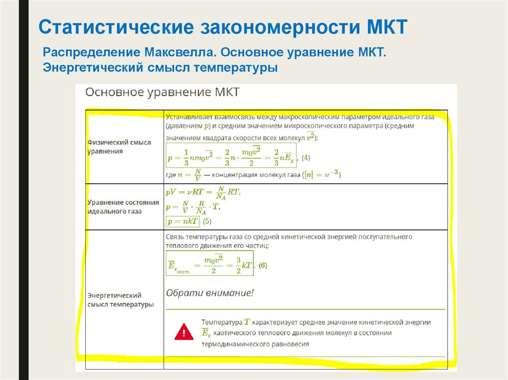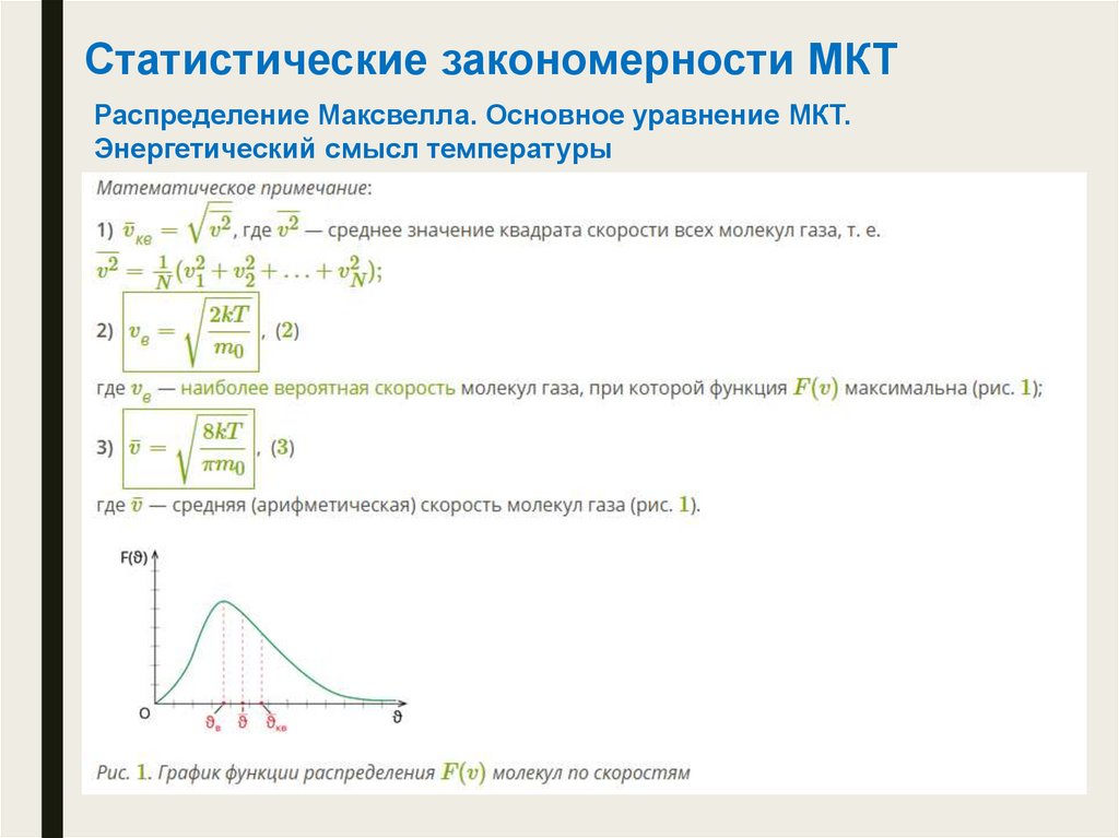 Статистические закономерности МКТРаспределение Максвелла. Основное уравнение МКТ.