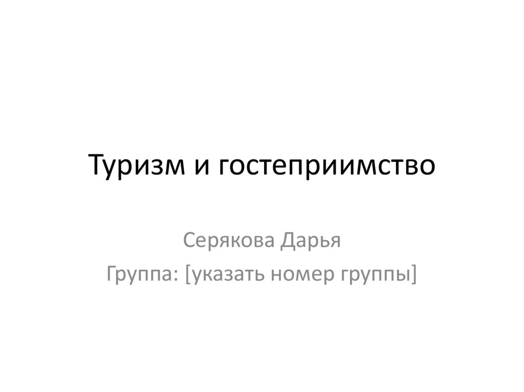 Туризм и гостеприимствоСерякова Дарья