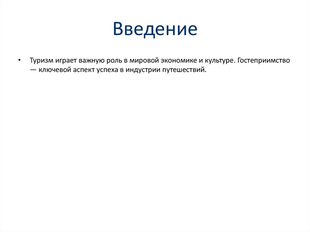ВведениеТуризм играет важную роль в мировой экономике и культуре. Гостеприимство