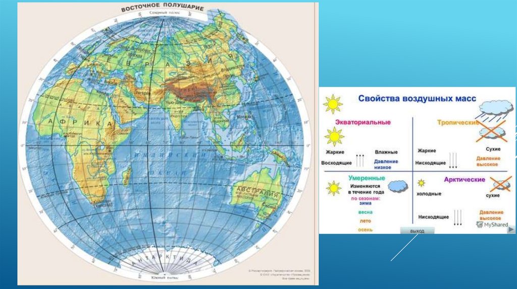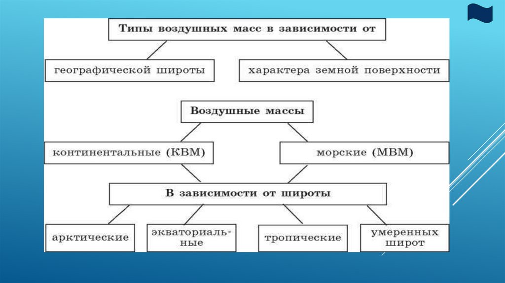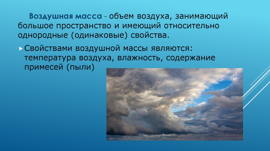 Воздушная масса - объем воздуха, занимающийбольшое пространство и имеющий относительно