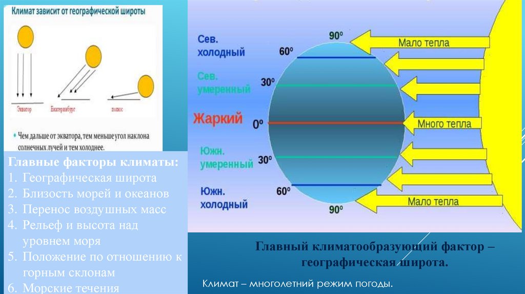 Главные факторы климаты:1. Географическая широта
