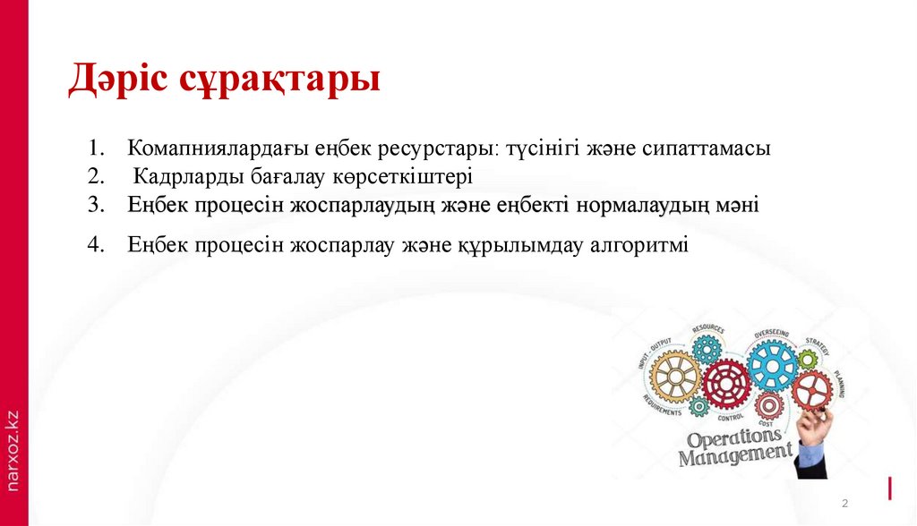 «ОПЕРАЦИЯЛЫҚ МЕНЕДЖМЕНТ»Тақырып 9. Еңбек процесін