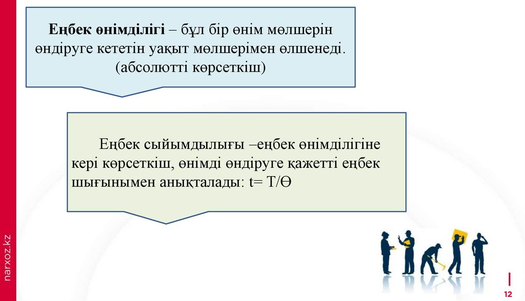 Еңбек өнімділігі – бұл бір өнім мөлшерінөндіруге кететін уақыт мөлшерімен өлшенеді.