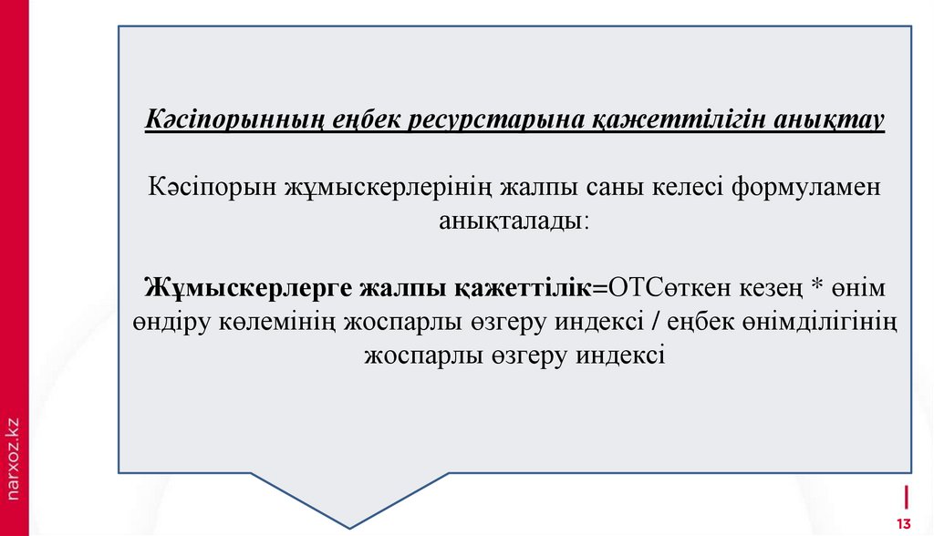 Жұмыскерлерге жалпы қажеттілік=ОТСөткен кезең * өнім