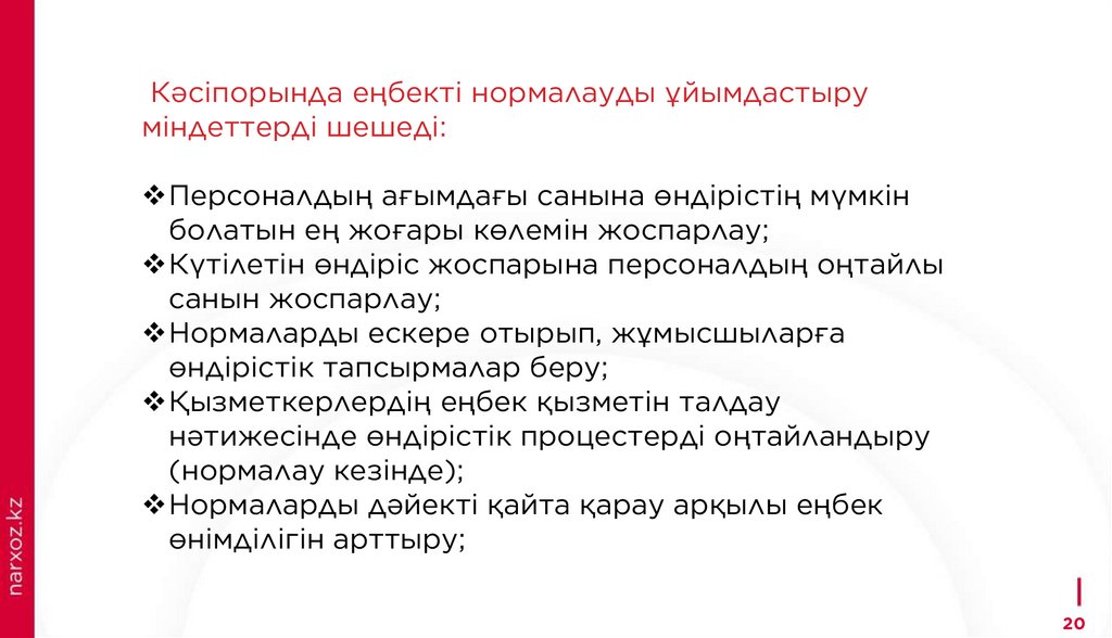 Кәсіпорында еңбекті нормалауды ұйымдастыруміндеттерді шешеді: