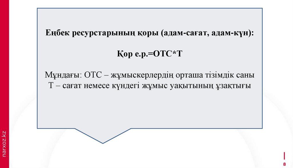 Еңбек ресурстарының қоры (адам-сағат, адам-күн):Қор е.р.=ОТС*Т