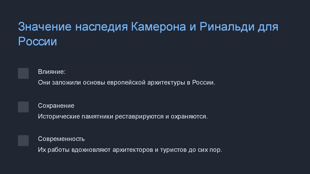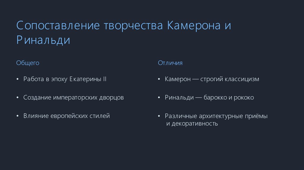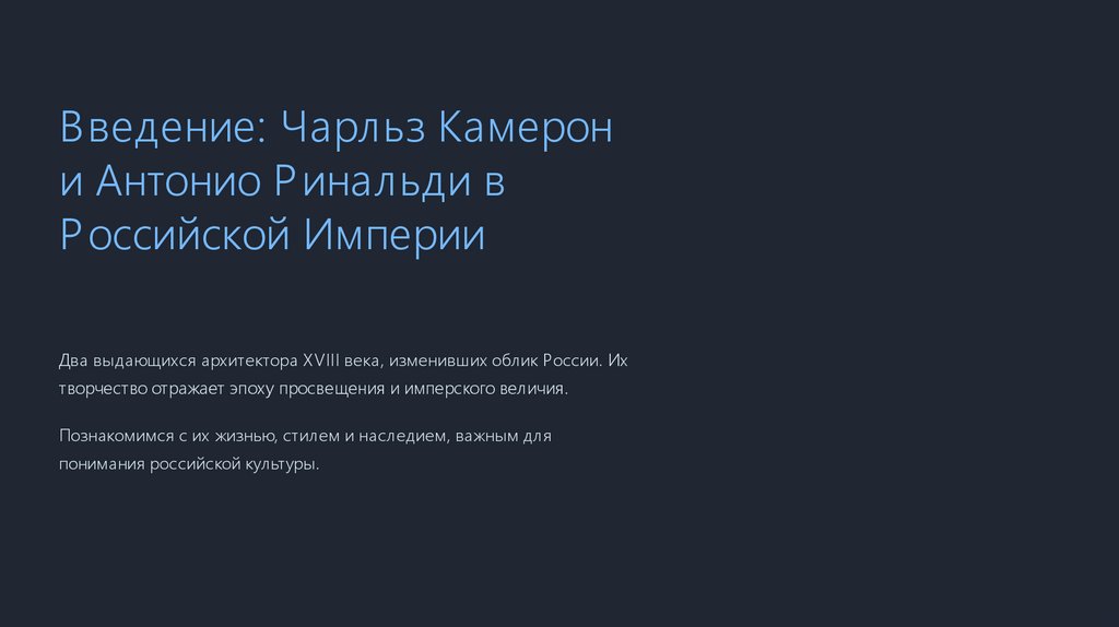 Чарльз Камерон и Антонио Ринальди в Российской Империи