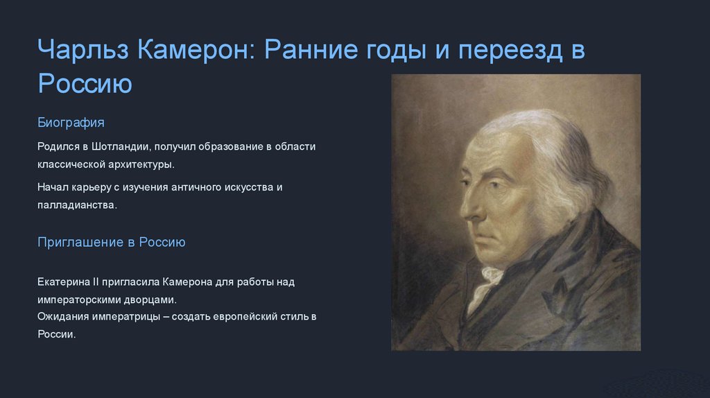 Чарльз Камерон: Ранние годы и переезд вРоссию