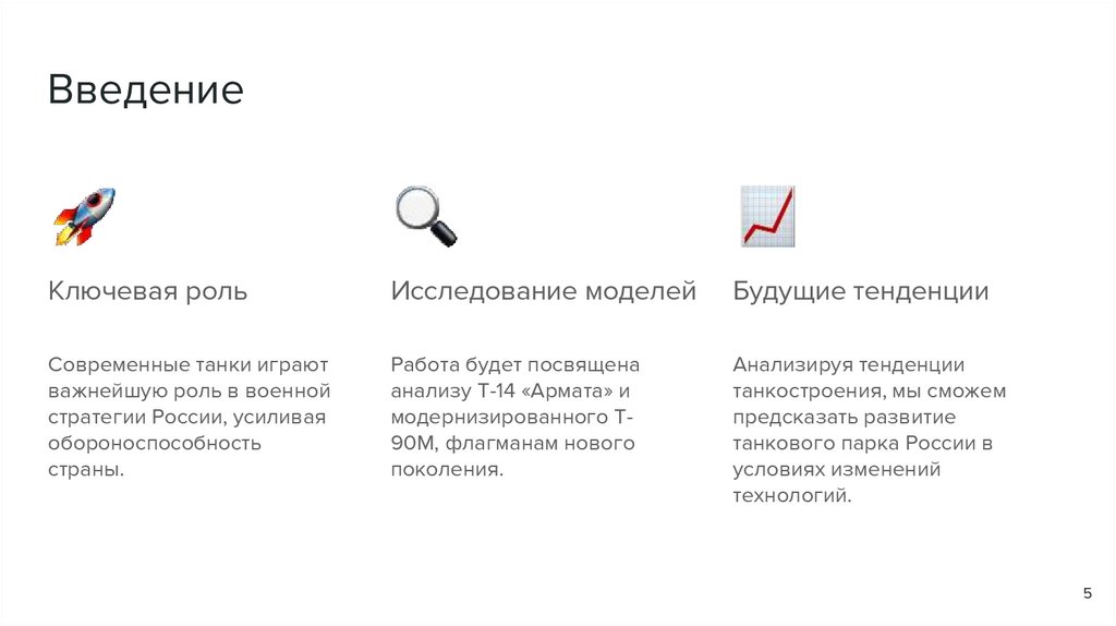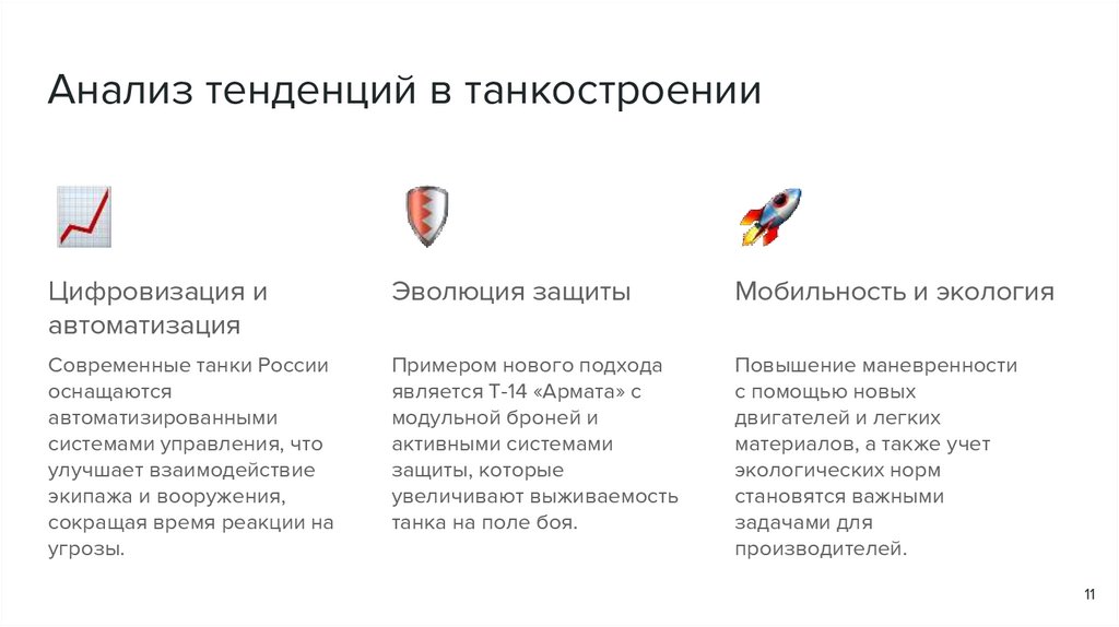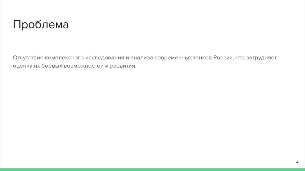 ПроблемаОтсутствие комплексного исследования и анализа современных танков России, что затрудняет