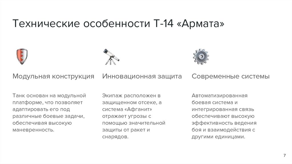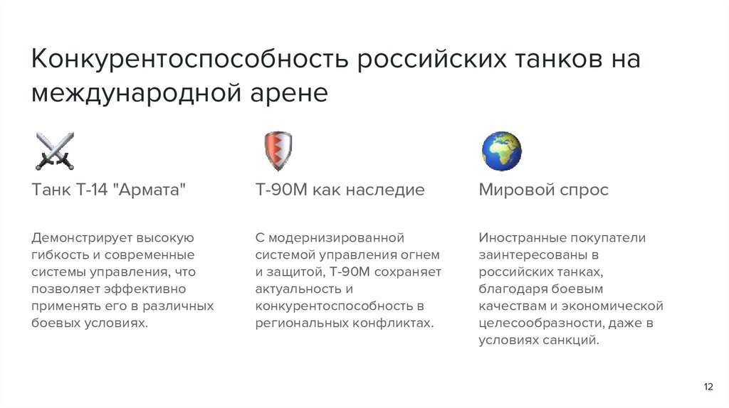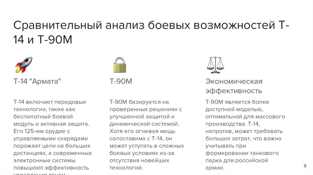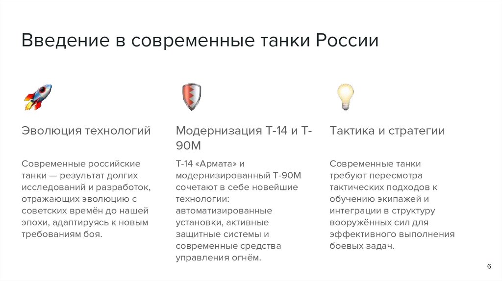 ЦельИзучение и анализ современных танков РФ, включая Т-14 «Армата» и Т-90М, а также их боевых