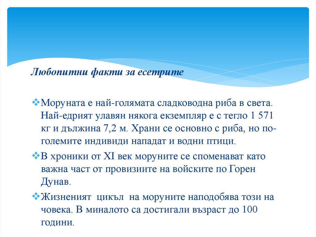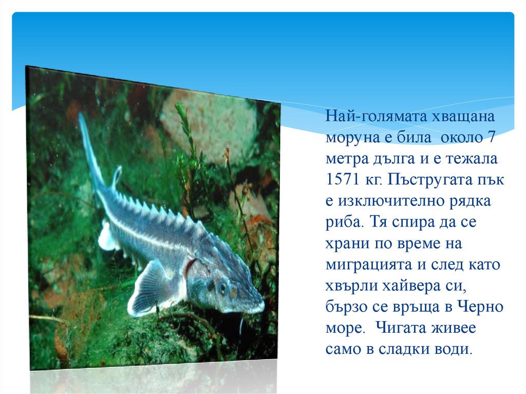 Любопитни факти за есетритеМоруната е най-голямата сладководна риба в света.