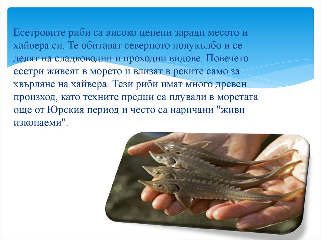 Eсетровите риби са високо ценени заради месото ихайвера си. Те обитават северното полукълбо и се