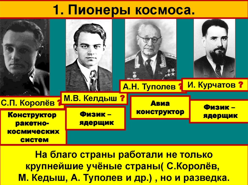 М. Кедыш, А. Туполев и др.) , но и разведка.