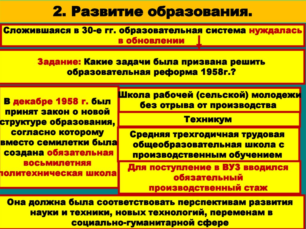 2. Развитие образования.Сложившаяся в 30-е гг. образовательная система нуждалась