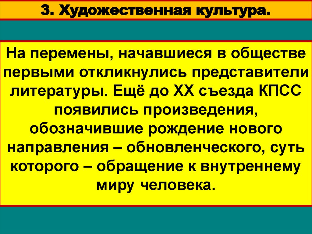 3. Художественная культура.На перемены, начавшиеся в обществе
