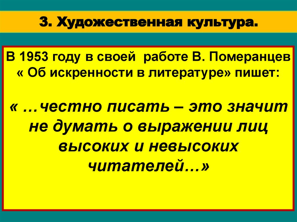 3. Художественная культура.В 1953 году в своей работе В. Померанцев