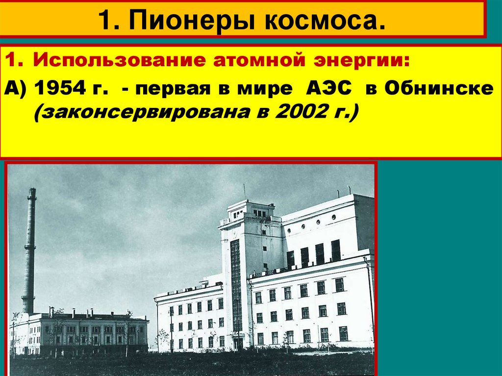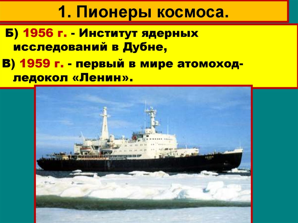 1. Пионеры космоса.Б) 1956 г. - Институт ядерных