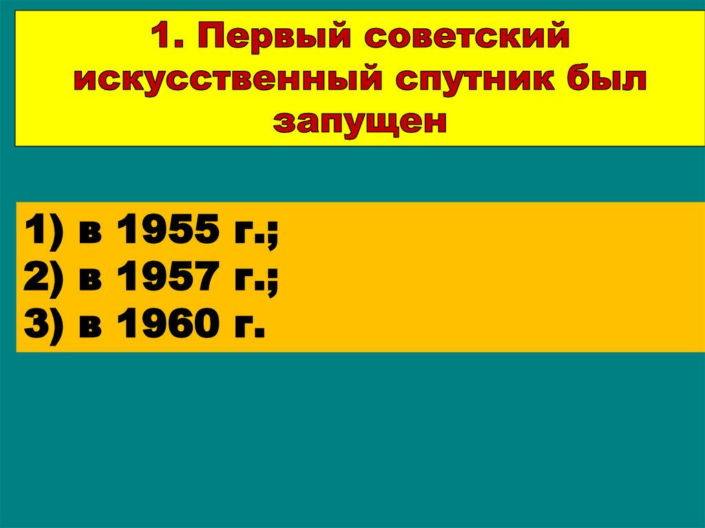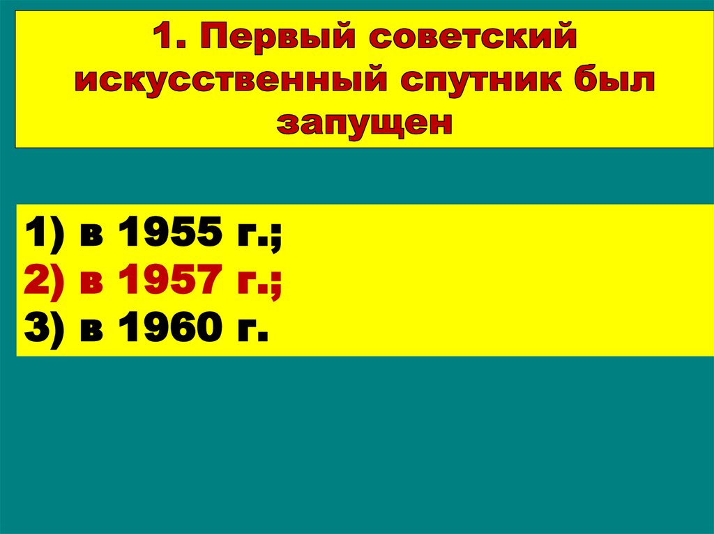 7. 4 октября 1957 – запуск в СССР первого искусственного спутника земли