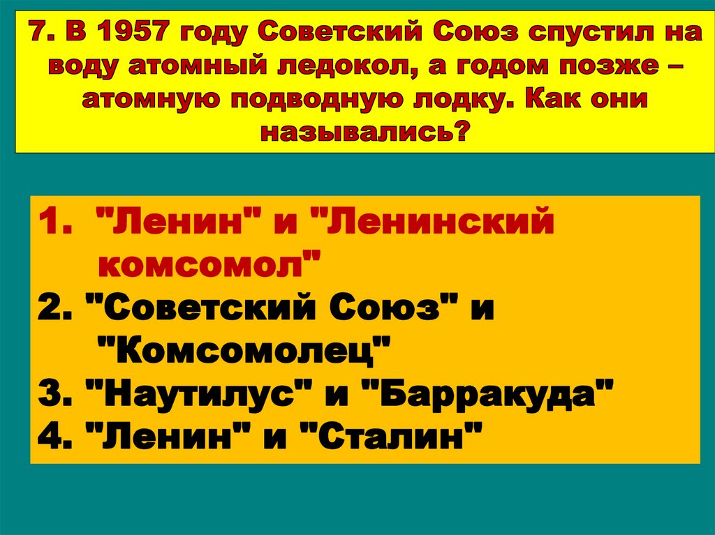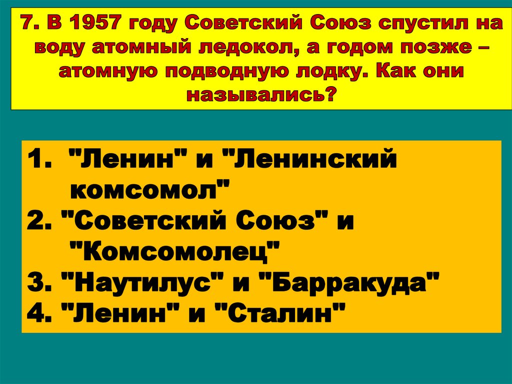В) 1959 г. - первый в мире атомоходледокол «Ленин».