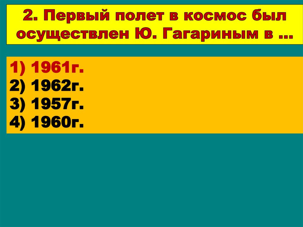 8. 12 апреля 1961 – первый полет человека в космос. Ю.Гагарин