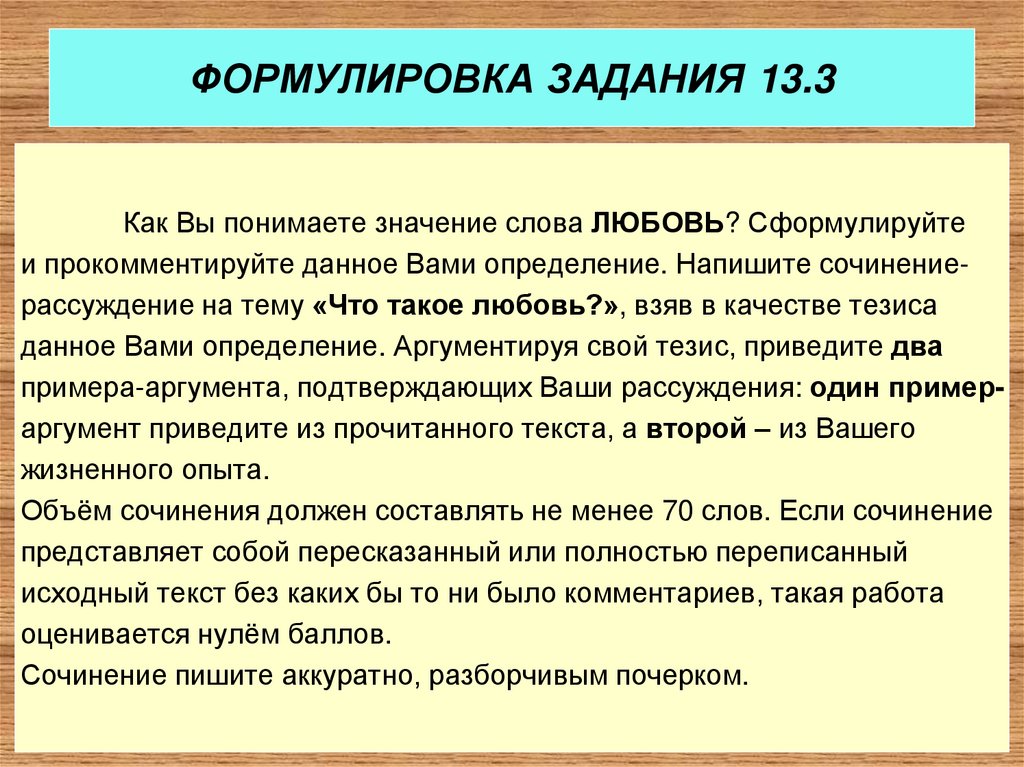 Как Вы понимаете значение слова ЛЮБОВЬ? Сформулируйтеи прокомментируйте данное Вами определение. Напишите сочинениерассуждение на тему «Что такое любовь?», взяв в качестве тезиса