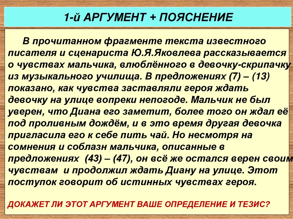 1-Й АРГУМЕНТ ИЗ ТЕКСТА+ПОЯСНЕНИЕ