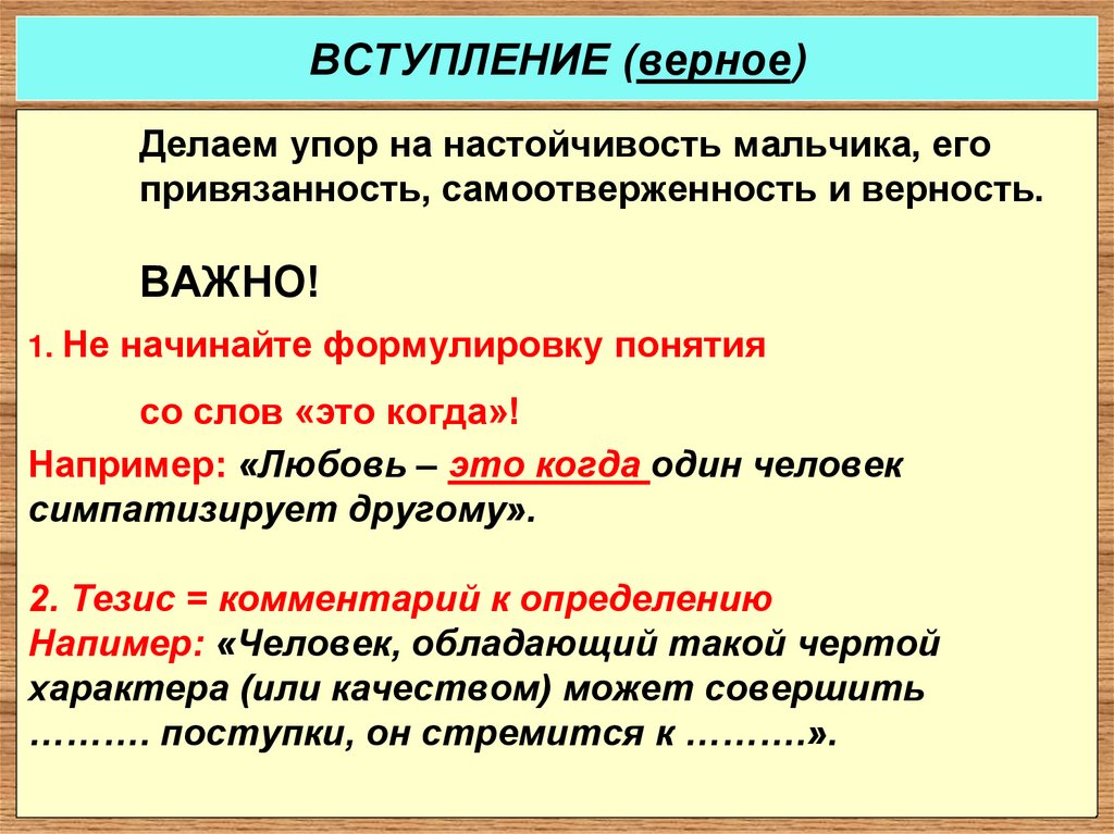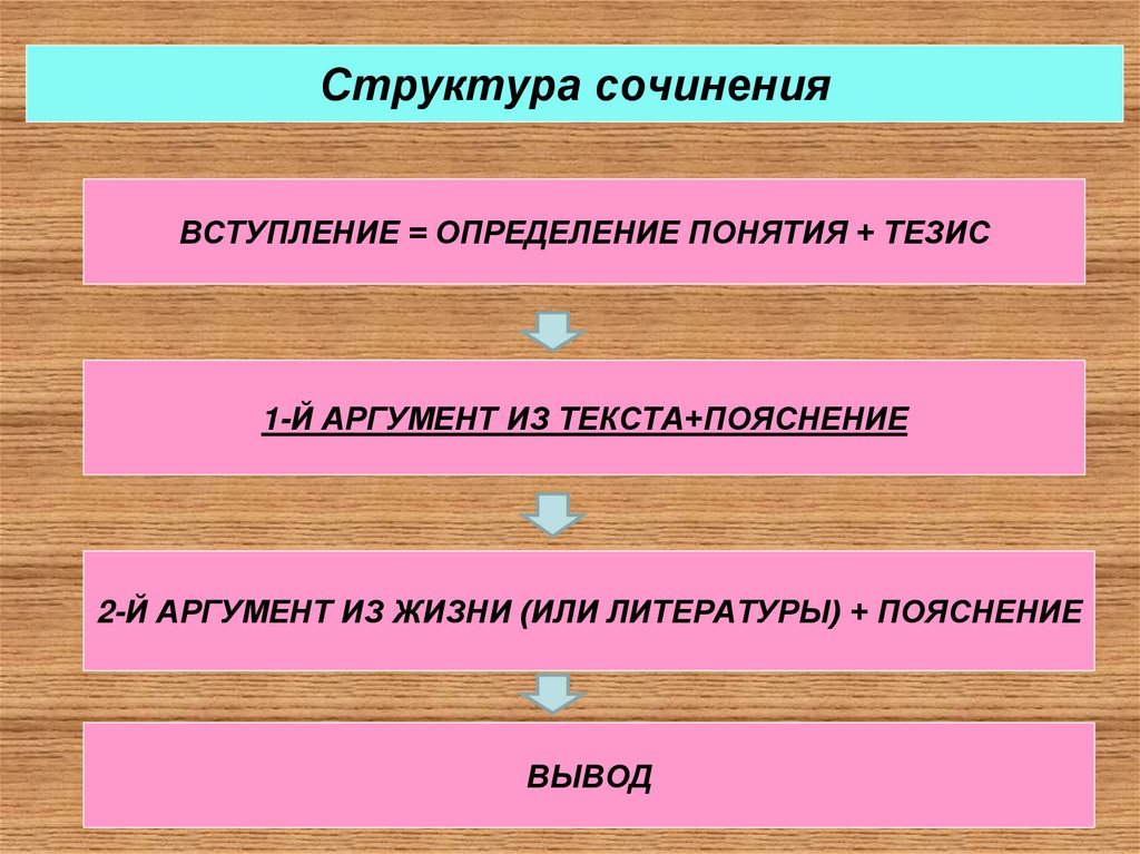 Структура сочиненияВСТУПЛЕНИЕ = ОПРЕДЕЛЕНИЕ ПОНЯТИЯ + ТЕЗИС