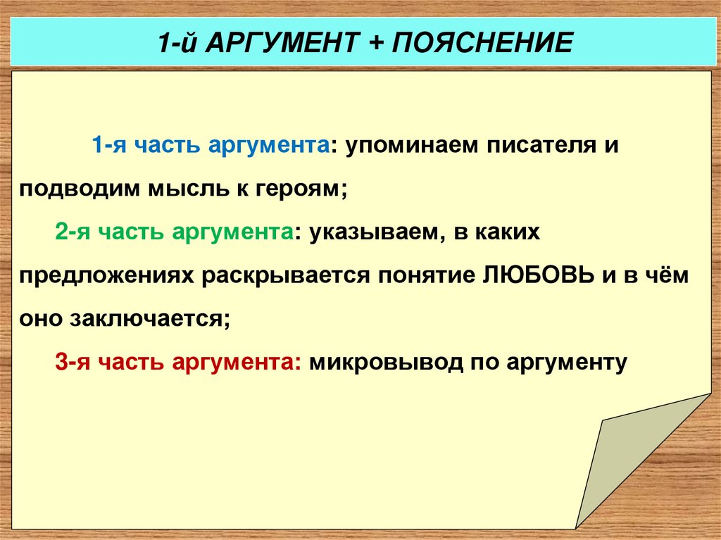 1-й АРГУМЕНТ + ПОЯСНЕНИЕ1-я часть аргумента: упоминаем писателя и